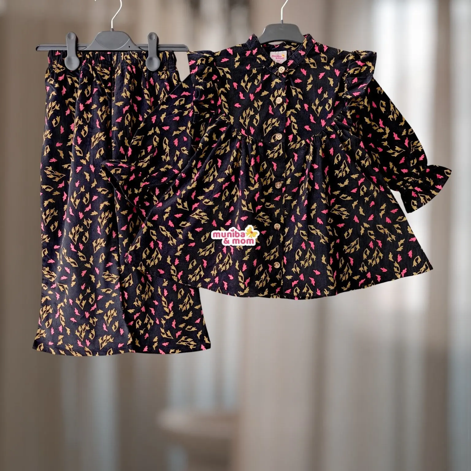 Black Pink Corduroy Cotton Top-set 2-12y (L4M1)