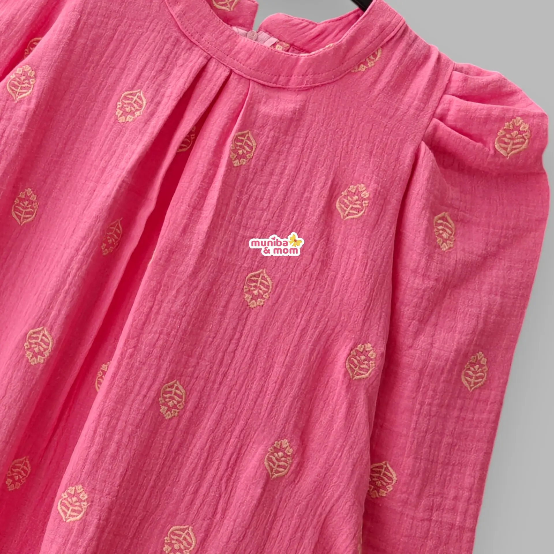 ক্যামেলিয়ার হাল্কা মিষ্টি পিংক বেইজে ক্রীম কালার সুতায় এম্ব্রয়ডারি করা ডাবল গজ মসলিন কটন ফেব্রিকে শীতের টপ-সেট। ম্যাচিং কালার লেস দিয়ে ডিজাইন করা হয়েছে। হালকা শীতে ক্যাজুয়ালি পরার জন্য নিয়ে নিতে পারেন যে কোনো সাইজে কাস্টমাইজ করে, ডেলিভারি সময় ১২-১৫ দিন।