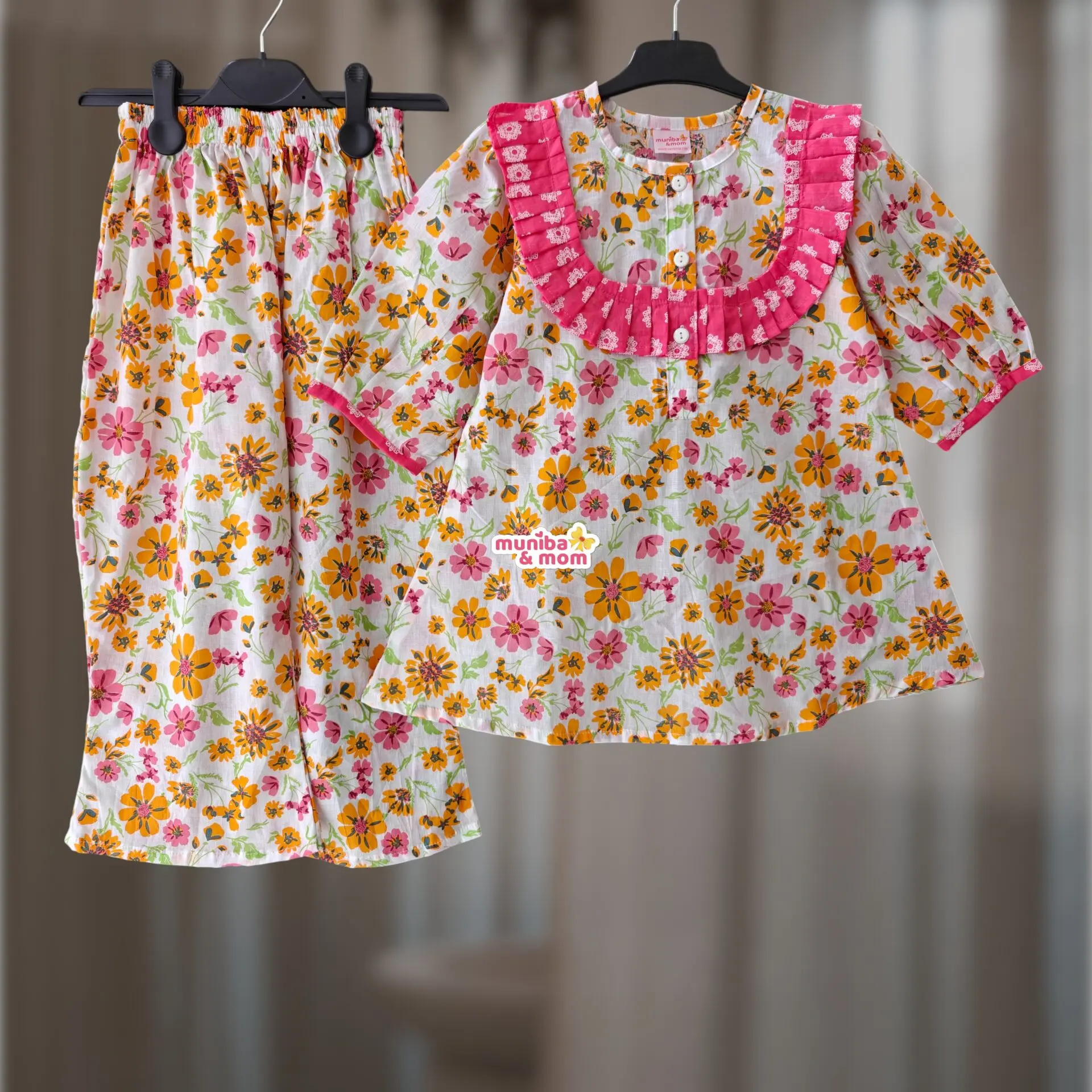 প্রিমিয়াম কটন ফেব্রিকে ফ্রক-সেট। হাতে নিতেই বোঝা যায় ফ্যাব্রিকটা কতটা নরম আর হালকা। বাচ্চারা সারাদিন পরে থাকলেও বিরক্ত বা গরম অনুভব করে না। মান, আরাম আর সুন্দর লুক—সব একসাথে। যে কোনো সাইজে কাস্টমাইজ করে, ডেলিভারি সময় ১২-১৫ দিন।