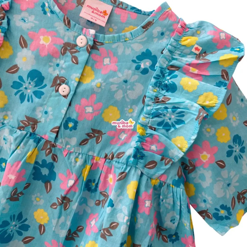 ✅ কালার & প্রিন্ট: স্কাই পিংক কালার ফ্লোরাল প্রিন্ট