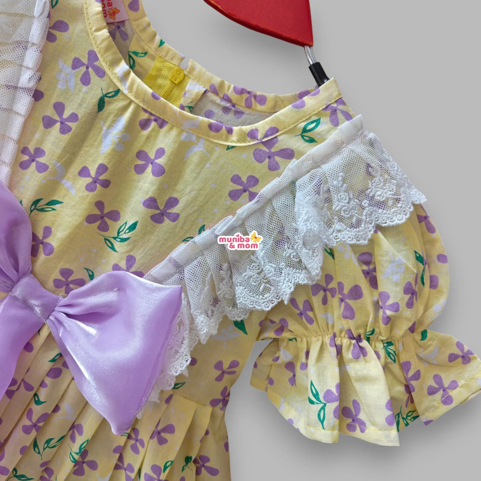 Yellow Purple Premium Cotton Frock-Set CC95T1